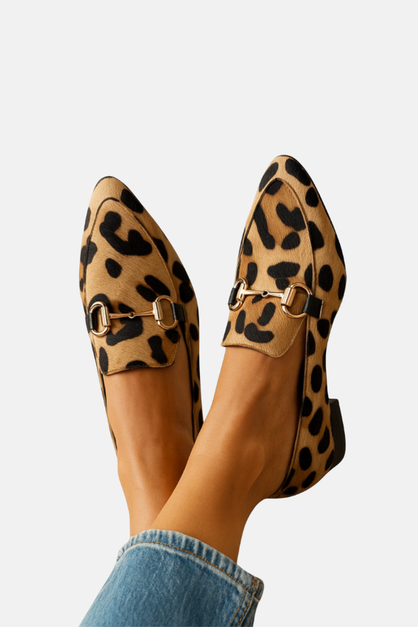 Få et modigt look med Milla loafers. Disse sko kombinerer en klassisk spids tåform, en diskret hæl og et elegant metalspænde. Den strukturerede silhuet giver et moderne touch, mens det dyreinspirerede print giver et legende touch til ethvert outfit.